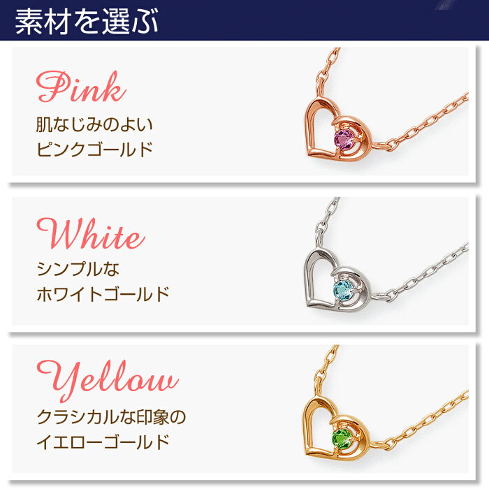 :ラッピング無料サービス対応 :合計金額3,980円(税込)以上送料無料ブランド・品番 THE KISS sweets / K-N1808 素材・加工 K10(各素材共通)ルース(12種類の誕生石よりお選びいただけます) 1.5mmラウンドカット×1 仕様・寸法 縦×横×厚さ / 約4.7×5.3×1.5mm重さ / 約0.7g チェーンの長さ K10 Φ0.21 角アズキ 40cm ※内4cmのアジャスターカン有り。