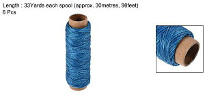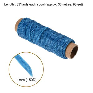ソウテン レザーミシン糸 33ヤード150D / 1mm ポリエステルワックス糸コード フラットスレッド ハンドステッチ革製本用 クラフトDIY (マヤブルー、6個)