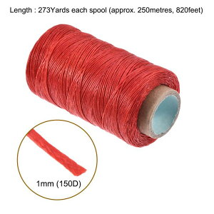 ソウテン レザーミシン糸 273ヤード150D / 1mm ポリエステルワックス糸コード フラットスレッド ハンドステッチ革製本用 クラフトDIY (レッド)